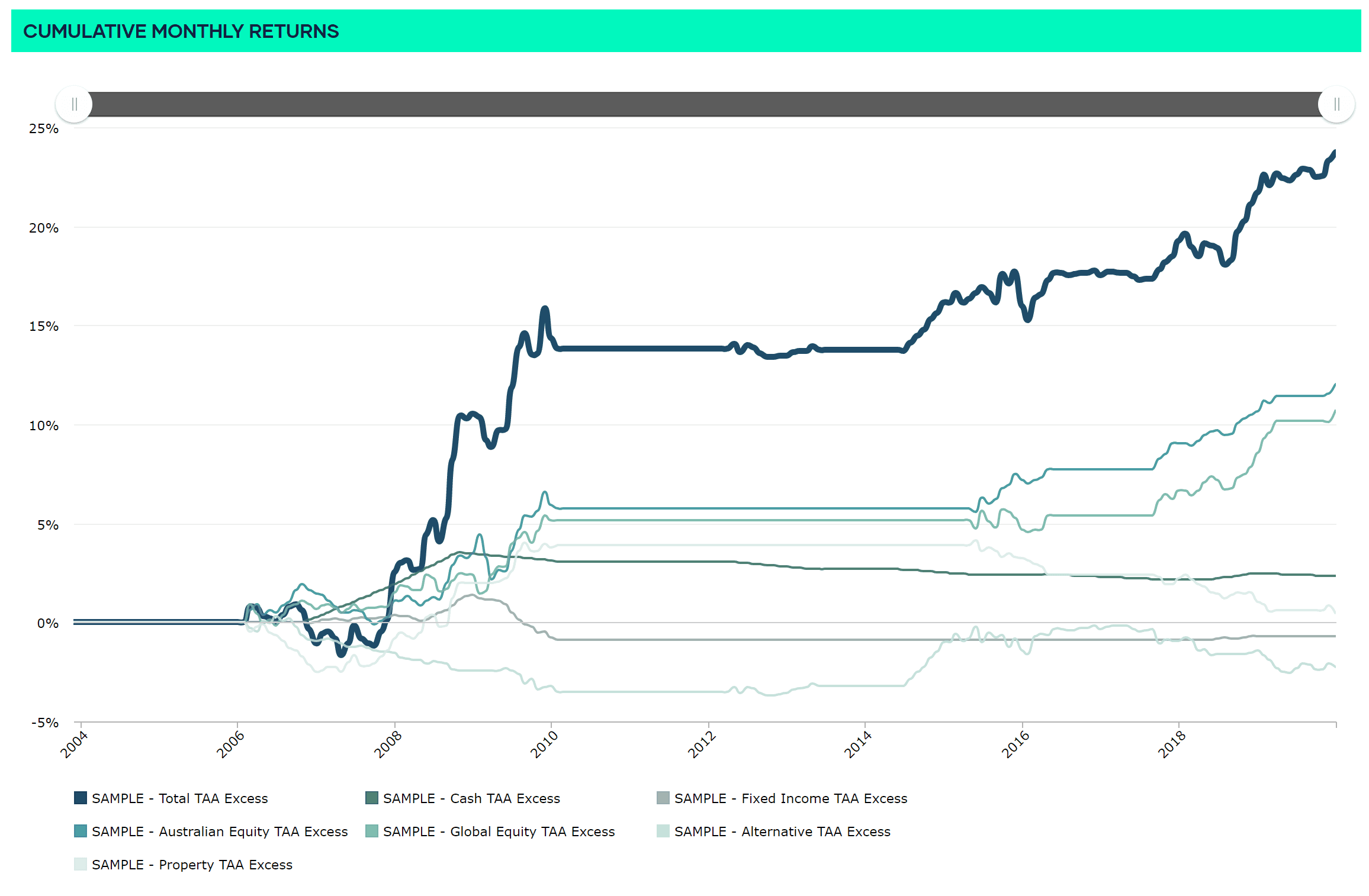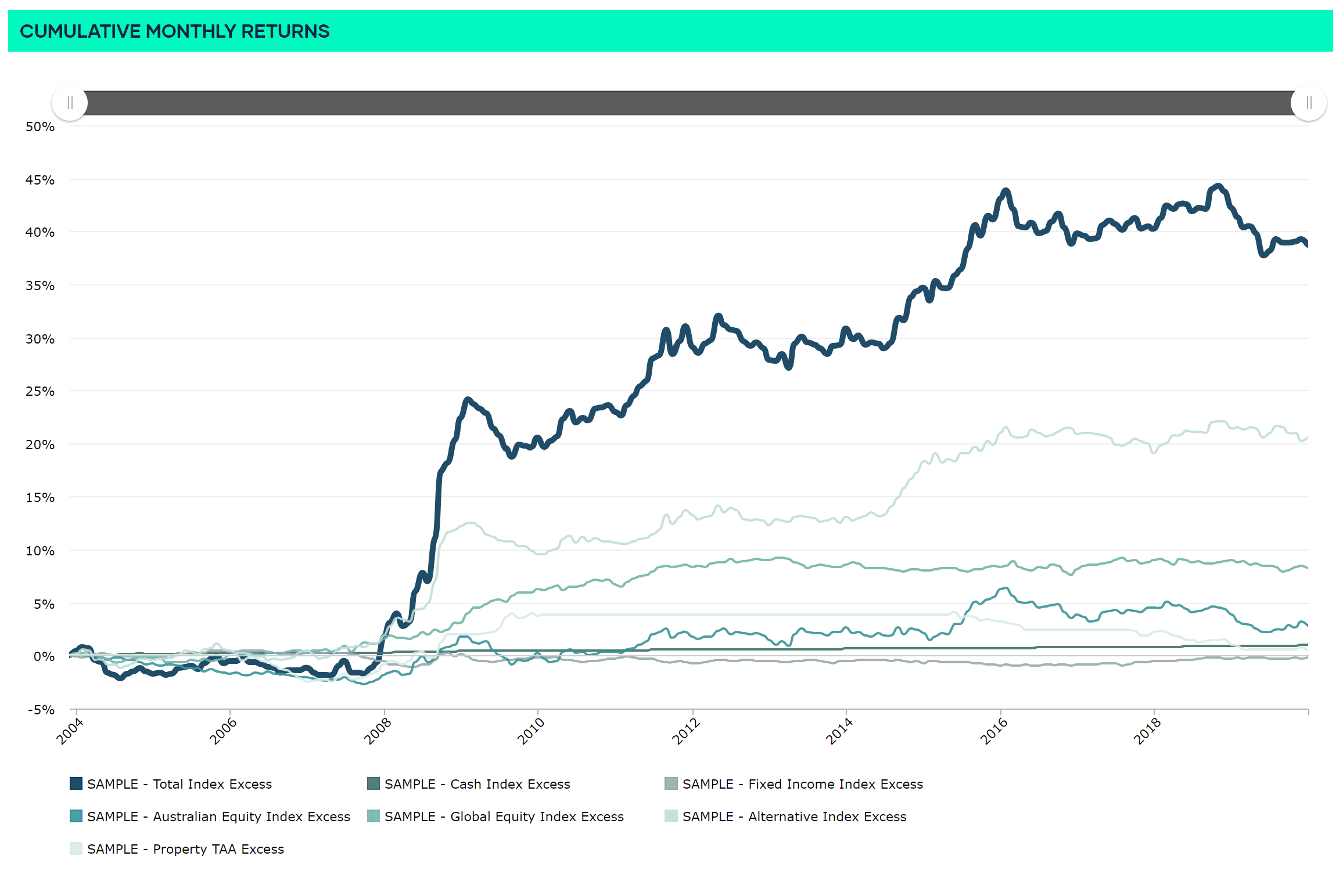 We can see an example from the Quant Reports platform, the screenshots below are taken from the Index Excess and Tactical Allocation Excess. The manager skillfully prevents losses in the 2008 period through Tactical Allocation movements.